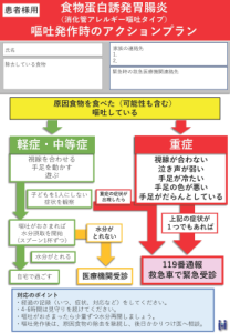 食物蛋白誘発胃腸炎(FPIES)について、症状の特徴や重症度の見分け方、嘔吐発作時の対応手順、水分補給や受診判断の目安などを整理し、保護者や医療関係者が迅速に対応できるようまとめた行動指針です。