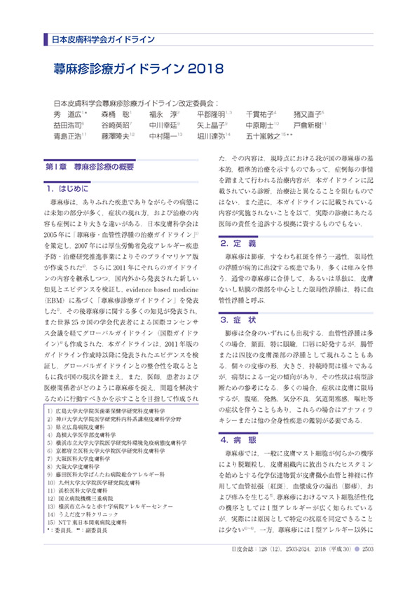 蕁麻疹の定義や分類、診断、検査、評価、治療方針までを体系的に整理し、症状抑制や再発予防の考え方、診療手順をまとめた、日本皮膚科学会による標準的診療ガイドラインです。