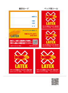 ラテックスアレルギーを持つ人が周囲に配慮を求める際に使用する表示カードで、天然ゴムへのアレルギーがあることを示し、医療現場や日常生活での事故防止や適切な対応につなげることを目的とした支援資料です。