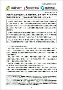 天然ゴム製品によって起こるラテックスアレルギーについて、症状や発症の仕組み、リスクが高い人、日常生活での注意点や再発防止策、医療機関受診の目安などを消費者向けにわかりやすく解説した注意喚起資料です。